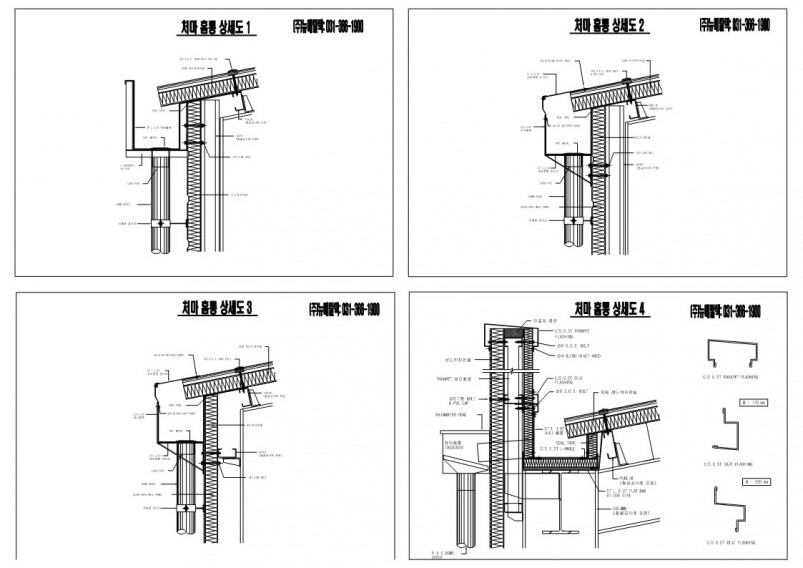 조립식판넬 처마물홈통 4가지 타입의 도면